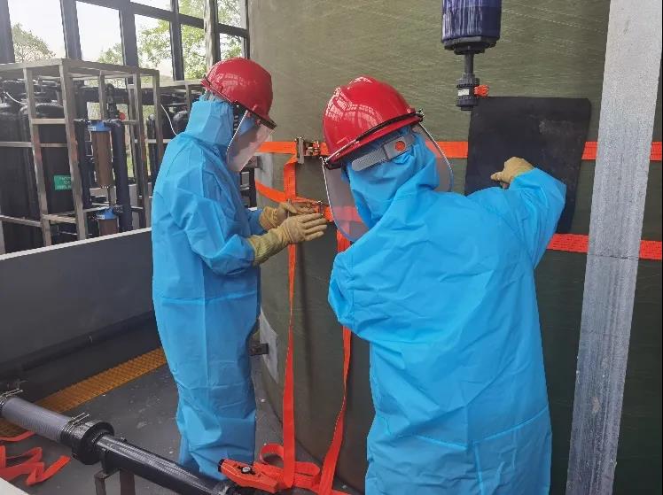 在結(jié)合理論學(xué)習(xí)之后,加強(qiáng)生產(chǎn)人員應(yīng)急處置和實(shí)操能力的演練。在演練環(huán)節(jié),模擬瓜洲變電所在生產(chǎn)運(yùn)行中35KV古洲線突發(fā)失電,值班人員啟動(dòng)應(yīng)急處置程序。班組人員按應(yīng)急預(yù)案步驟切除相關(guān)高壓低壓開(kāi)關(guān)設(shè)備,再經(jīng)過(guò)一系列倒閘操作,迅速切換到到備用線路上,恢復(fù)了生產(chǎn)用電,并做好巡查匯報(bào)工作。演練采取實(shí)操方式進(jìn)行,整個(gè)倒閘操作過(guò)程步驟有序,嚴(yán)格按照突發(fā)事故處理流程進(jìn)行演練,嚴(yán)格使用規(guī)范的操作術(shù)語(yǔ),對(duì)所涉及到的驗(yàn)電、分合開(kāi)關(guān)、檢查設(shè)備等操作符合安規(guī)要求,達(dá)到了預(yù)期效果。為強(qiáng)化?;饭芾恚嵘龁T工應(yīng)急處置能力。近日,頭橋水廠針對(duì)次氯酸鈉制備和管理的安全操作規(guī)程要求,組織了次氯酸鈉儲(chǔ)罐和投加管道泄漏兩個(gè)科目的應(yīng)急處置演練,通過(guò)提升應(yīng)急處置能力,不斷強(qiáng)化危化品的管理和使用。