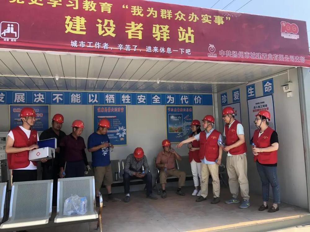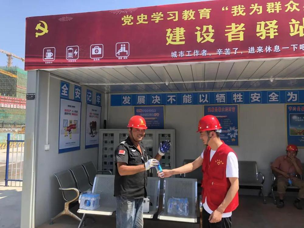 “建設(shè)者驛站”是城建置業(yè)公司黨支部籌劃為群眾辦實(shí)事、提供對外服務(wù)的一個穩(wěn)定且持久的志愿服務(wù)平臺。項(xiàng)目現(xiàn)場,烈日當(dāng)空,滿頭大汗的建筑工人們在黨員志愿者的引導(dǎo)下前往驛站納涼休息、喝水飲茶,在接過志愿者及時遞過來的純凈水時,他們被烈日灼紅的臉上綻開了憨厚淳樸的笑容。支部負(fù)責(zé)人在詳細(xì)了解一線工人的工作生活情況以及防暑降溫措施后,現(xiàn)場給大家發(fā)放了大麥茶、清涼飲料、醫(yī)藥包等防暑降溫物品,他對施工人員克服高溫天氣影響,堅(jiān)守崗位認(rèn)真工作表示感謝,一再叮囑大家要始終把安全和健康放在首位,項(xiàng)目部要切實(shí)關(guān)心一線職工,組織好錯峰作業(yè)施工,認(rèn)真落實(shí)防暑降溫措施,為廣大戶外勞動者送安全、送清涼,預(yù)防夏季生產(chǎn)安全事故發(fā)生,確保企業(yè)安全生產(chǎn)和項(xiàng)目建設(shè)有序推進(jìn)。
