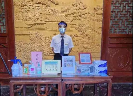 做好酒店防疫的第一道防線。工作人員充分發(fā)揮一崗多能、一人多專的作用,除了肩負對所有進入酒店的人員驗證“雙碼”,測量體溫,監(jiān)督所有進入酒店的人員佩戴口罩的責任外,還根據(jù)防疫接待服務要求,主動加強環(huán)境安全管理,在大堂設(shè)置1.5米分隔線進行登記,每日對整個酒店園內(nèi)外定時消毒。
