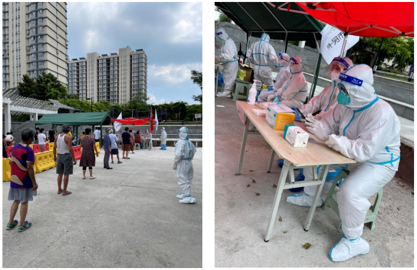 志愿者的臉龐遮掩在面罩與口罩下,身形隱藏于防護(hù)服和藍(lán)馬甲里,面對(duì)炎炎酷暑與疫情防控的雙重“烤”驗(yàn),化身居民“汗”衛(wèi)者,守好社區(qū)“安全線”。8月7日,志愿者服務(wù)隊(duì)接到支援廣福花園廣欣苑輔助核酸檢測(cè)、協(xié)助物資采購(gòu)的任務(wù)。自此后的10天中,他們輔助該封閉小區(qū)開展核酸檢測(cè),做好逐樓通知并維護(hù)核酸檢測(cè)點(diǎn)秩序,至今累計(jì)服務(wù)7次核酸檢測(cè)。他們還協(xié)助社區(qū)完成所轄區(qū)域內(nèi)居民信息核對(duì),值守小區(qū)出入口,嚴(yán)格查驗(yàn)體溫和“兩碼”,并幫助社區(qū)做好居民生活物資的預(yù)訂、采購(gòu)和配送。