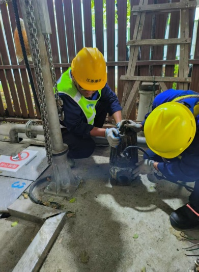 此次巡檢特別強(qiáng)化安全管理全鏈條檢查,不僅全面梳理各項(xiàng)安全措施落實(shí)情況,還對(duì)防汛應(yīng)急車輛(吸污車、排水泵、應(yīng)急救援車等)、消防器材配備、應(yīng)急照明系統(tǒng)、防汛物資儲(chǔ)備等進(jìn)行逐項(xiàng)清點(diǎn),同時(shí)對(duì)泵站、截流井內(nèi)的設(shè)備設(shè)施進(jìn)行了深度保養(yǎng)。此外,工作人員深入泵站、截流井周邊區(qū)域,對(duì)管網(wǎng)走向、環(huán)境隱患進(jìn)行實(shí)地勘察,并逐一對(duì)污水管道及泵池進(jìn)行疏通、清淤,提前防范外部因素對(duì)泵站及截流井汛期運(yùn)行的干擾。