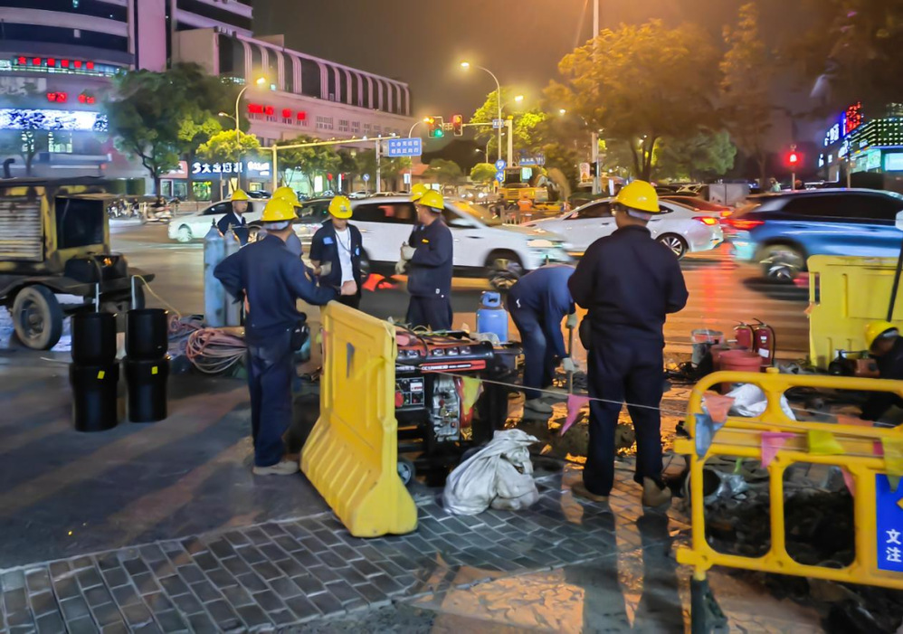 此次改造工程任務艱巨,停氣范圍廣、焊接工作量大,對施工組織和技術保障提出了極高要求。為了將施工對市民生活和城市交通的影響降至最低,揚州中燃精心策劃,組織了兩支經(jīng)驗豐富的施工隊伍同時施工,保障施工流程順暢高效進行。5月28日21點,當城市逐漸進入夢鄉(xiāng),施工人員們精神抖擻地投入到緊張的施工中。他們克服夜間作業(yè)視線差、體力消耗大等困難,嚴格按照施工規(guī)范和安全標準,爭分奪秒推進焊接、新舊管道切換等工作。經(jīng)過全體施工人員的不懈努力,至次日清晨6點完成改造、恢復供氣,確保周邊居民能夠正常使用燃氣。