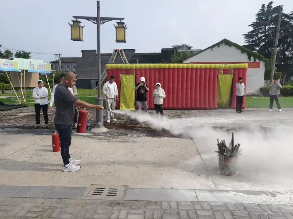 培訓結(jié)束后,在小秦淮街區(qū)現(xiàn)場開展了一場緊張有序的應(yīng)急逃生及消防演練。隨著警報聲響起,參與培訓的員工在工作人員的引導下,捂住口鼻,彎腰低姿,沿著預定逃生路線快速、有序地撤離到安全區(qū)域。隨后,工作人員通過理論講解與現(xiàn)場示范相結(jié)合的方式,詳細指導員工正確使用滅火器。大家踴躍參與實踐操作,在“手把手”教學中掌握了滅火器“提、拔、握、壓”的使用要領(lǐng),切實提升了應(yīng)對突發(fā)火災的能力。