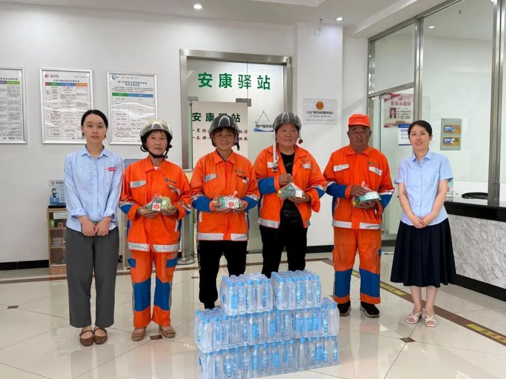 7月11日上午,長江水務工作人員提前在安康驛站準備好礦泉水、藿香正氣水、清涼油等防暑降溫慰問品。當環(huán)衛(wèi)工人結束清晨清掃工作,陸續(xù)來到驛站休憩時,工作人員立刻熱情迎上前,將一份份打包好的“清涼禮包”逐一送到他們手中。