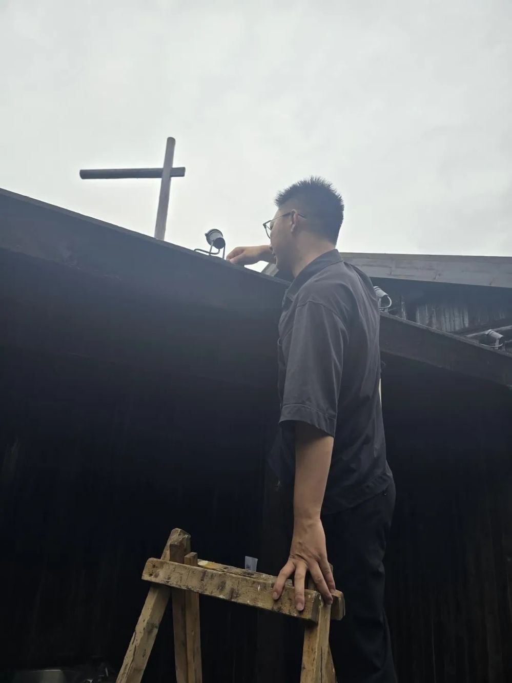 下午2點,魯毅帶著“安全禮包”來到街區(qū)某民宿。他爬上木梯檢查屋頂太陽能熱水器固定情況,發(fā)現(xiàn)支架螺絲松動,立即掏出電動扳手,指導(dǎo)商戶用扳手進行緊固。轉(zhuǎn)入公共區(qū)域,魯毅的目光被墻角斑駁的接線板吸引?!巴踅隳?,這截銅線已經(jīng)薄得像紙片,同時開空調(diào)和熱水器,它就會像您煮的陽春面——發(fā)燙、發(fā)軟!”話音未落,他掏出帶有過載保護的新插座,當(dāng)著眾人接上電熱水壺,在熱水壺?zé)_的瞬間,咔嗒一聲清脆的斷電聲讓空氣凝固,商戶不由得驚出了一身冷汗。