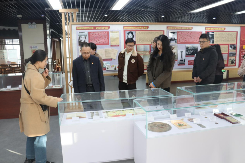 走進主題展廳,“組織動員”“眾志成城”“英勇作戰(zhàn)”“英雄贊歌”四個篇章依次鋪展,百余份歷史照片、文獻資料與珍貴實物,生動再現(xiàn)了75年前志愿軍保家衛(wèi)國的壯闊歷程。黨員干部們駐足凝視、認真聆聽,揚州籍烈士的戰(zhàn)功名錄里,是故土兒女的熱血赤誠,志愿軍特級英雄楊根思“抱起炸藥包與敵同歸于盡”的壯舉,盡顯以身許國的決絕;空戰(zhàn)勇士吳奇犧牲前的最后一封家書,藏著對家國的牽掛與不舍;上甘嶺戰(zhàn)役中孫子明舍生忘死的沖鋒,刻著無畏向前的勇毅。泛黃的史料與鮮活的事跡,既生動詮釋了“祖國和人民利益高于一切”的精神內(nèi)核,也讓大家深刻領(lǐng)會了志愿軍的愛國主義、革命英雄主義與國際主義精神。