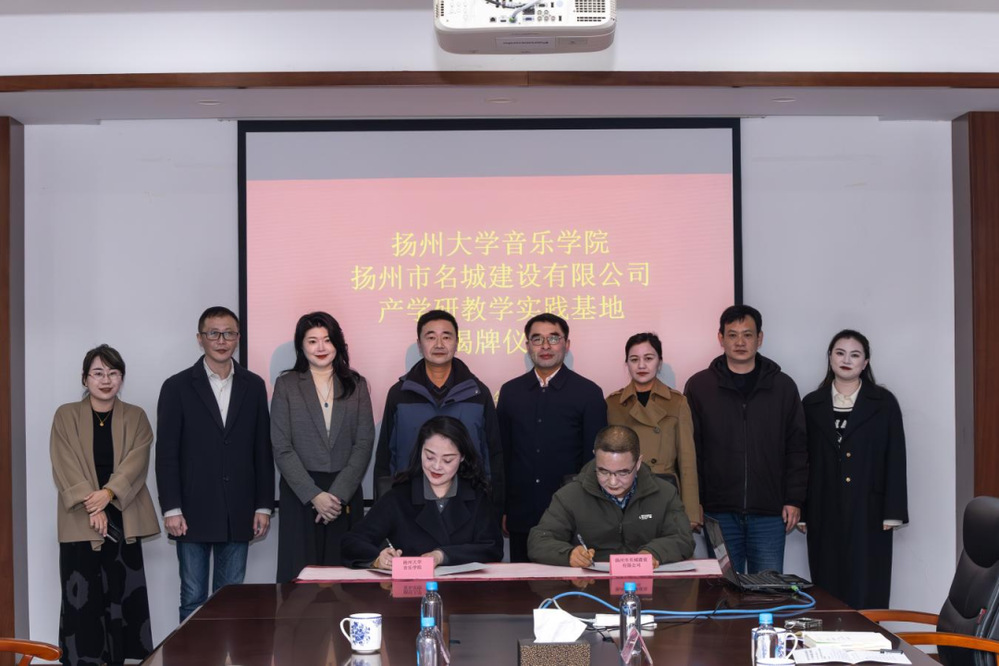 近日,揚州市名城建設有限公司與揚州大學音樂學院“產(chǎn)學研教學實踐基地” 簽約揭牌儀式在原古城保護展示館舉行。揚州市名城建設有限公司黨總支書記、總經(jīng)理戴興春,揚州大學音樂學院黨委書記陸濤、院長邵萍及相關負責人出席儀式。