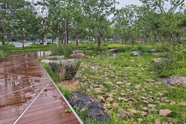 通過(guò)融合景觀設(shè)計(jì)、排水工程、海綿城市等多項(xiàng)專(zhuān)業(yè)技術(shù),共打造雨水花園1792m2,實(shí)現(xiàn)可調(diào)蓄容積412m3,年徑流總量控制率達(dá)91.19%,年總控制雨水量11.64萬(wàn)m3,面源污染削減率達(dá)63.83%,內(nèi)澇防治標(biāo)準(zhǔn)達(dá)到三十年一遇重現(xiàn)期,為揚(yáng)州成功入選2025年度中國(guó)海綿城市典范注入強(qiáng)勁動(dòng)能。